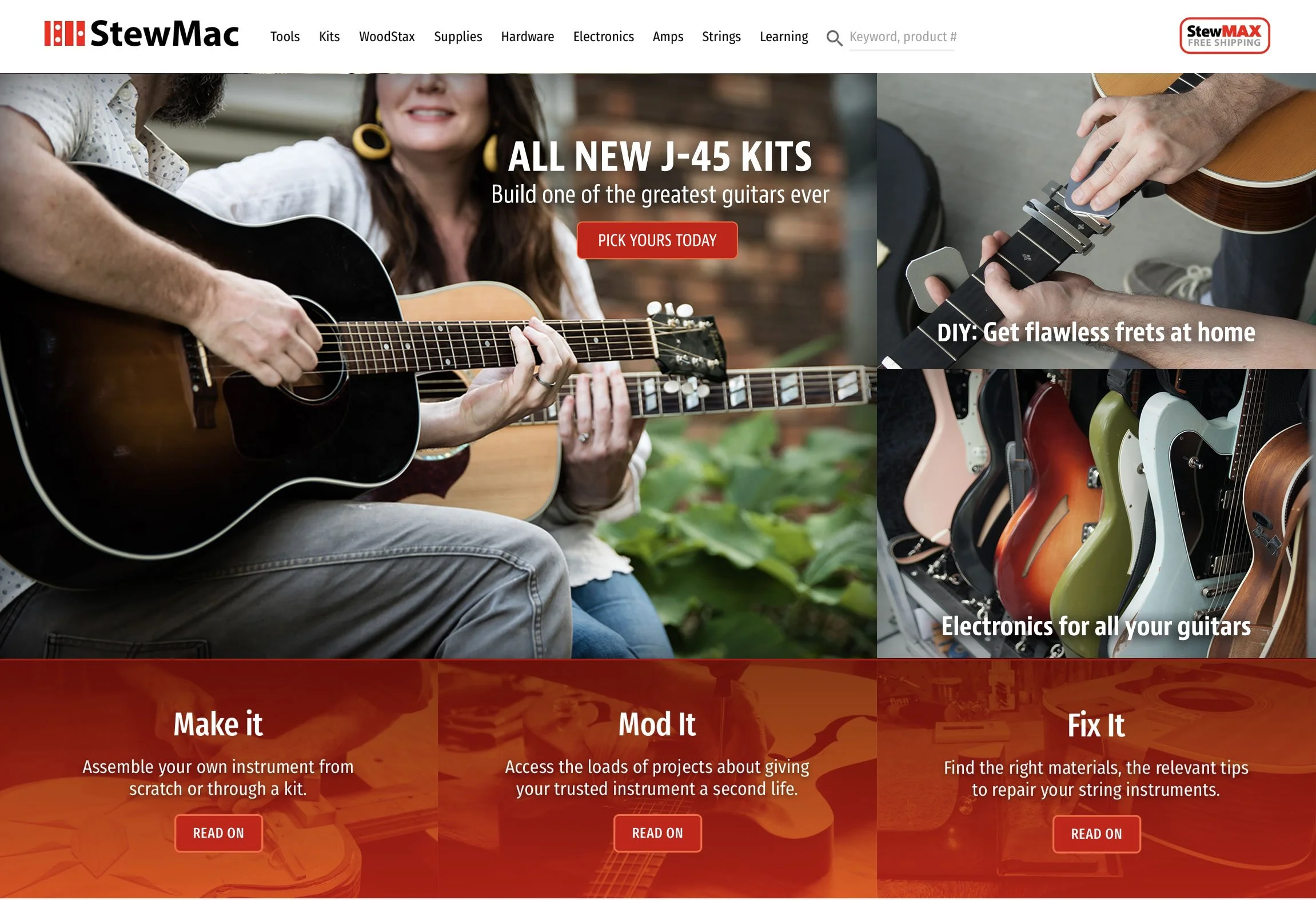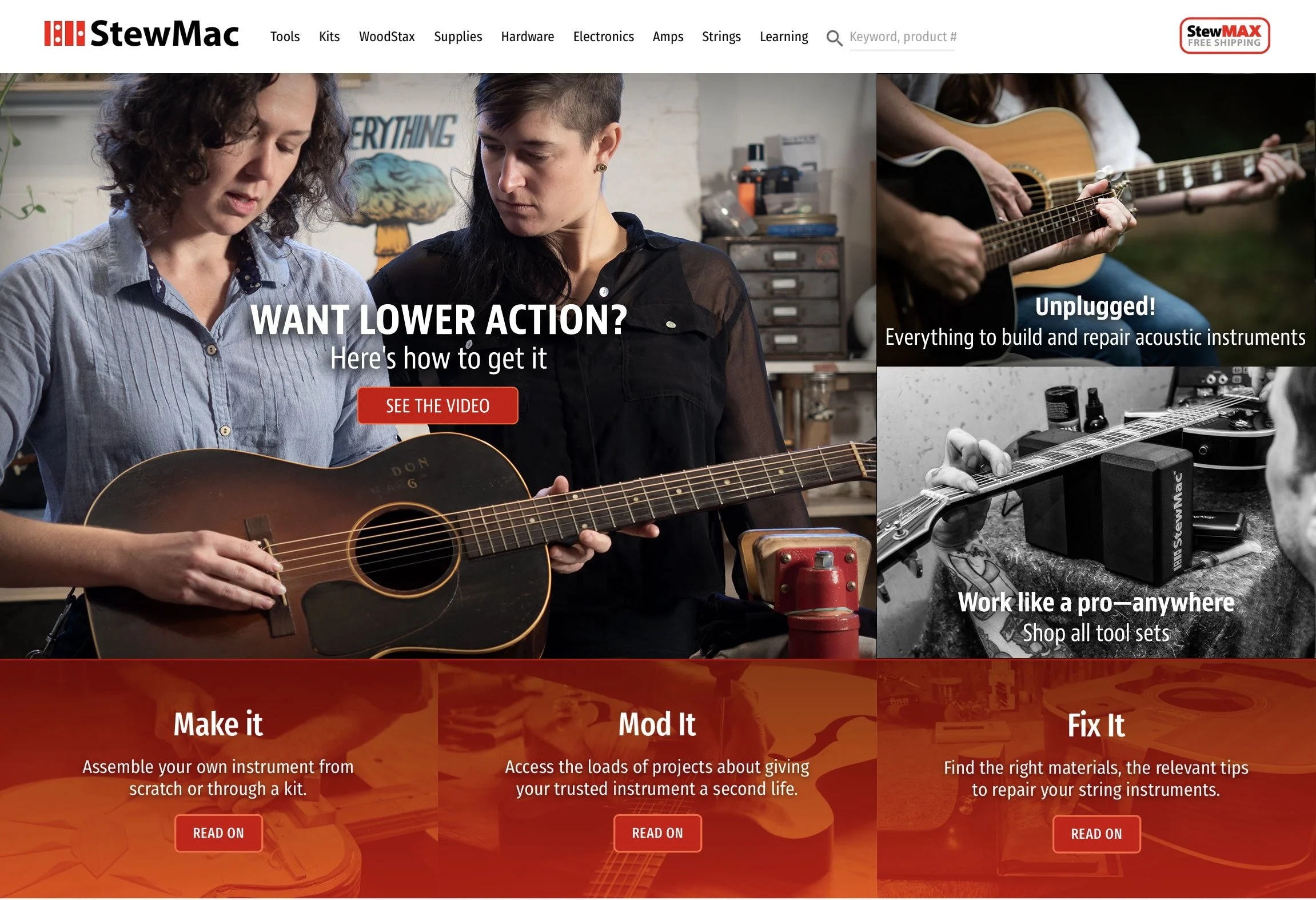 During my time as a visual designer at StewMac, I was immersed in the world of luthierie. My creative contributions not only played a pivotal role in connecting with devoted customers but also significantly shaped StewMac’s brand aesthetic appeal. I was able to direct top preforming assets and learn valuable techniques for crafting visual narratives. Through mediums such as emails, web content, and landing pages, I designed strategies for a user-friendly experience that grew their product knowledge.